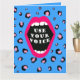 ¡Usa tu voz! Habla alto, incluso si tu voz se sacude. El fondo de la impresión de leopardo en azul y rosa muestra una vibrante boca de gritos rosa.