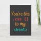 Este Pun de Programación con la cita "USTED ES EL CSS A MI HTML - WEB DEV PUN" es el regalo perfecto para todos los Geeks de Programación, programadores de noob, desarrolladores de juegos, programadores, desarrolladores web, desarrolladores de juegos, desarrolladores de juegos, y otros que aman la Codificación y programación.
