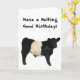¡Aquí está un buey ceñido hermoso de Galloway que el becerro con un divertido tiene un buen mensaje del cumpleaños que ceñe! ¡Itts también listo para añadir su propio nombre, mensaje o nombre de la granja a! Estas vacas escocesas raras del beltie son dóciles y resistentes.