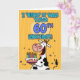 "¡'Oí' que era tu cumpleaños número 60!" divertida tarjeta de felicitación de cumpleaños con vaca sosteniendo un pastel.