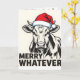 Para aquellos que solo "sobreviven a las fiestas". Esta tarjeta doblada personalizable sarcástica y divertida presenta una vaca de arte de línea minimalista con el texto en negrita y fijo "Merry Whatever". La tarjeta es totalmente editable, con campos de texto editables para sus firmas, año y broma interna personal. Todos los objetos de la plantilla permiten una fácil personalización. Perfecta para colegas, amigos o cualquier persona que aprecie el humor negro y los temas de animales únicos.