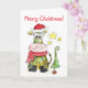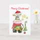 Esta es una obra original de técnica mixta que representa a una vaca navideña con un sombrero de Papá Noel.