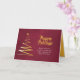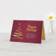 personalizable de tarjetas de felicitaciones corporativas de temporada con su propio logo con un árbol de Navidad geométrico dorado contra un lavado de color burdeos.