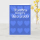 Blue Valentine's day card with a pattern of yellow hearts. Outside verse is "You're simply the best". Inside verse is "Happy Valentine's Day".