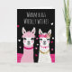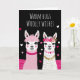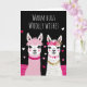 Las llamas adorables, adornadas con corazones, flores y accesorios, crean una escena encantadora y caprichosa. Personalice con un nombre, mensaje y nombre del remitente en el interior.