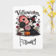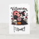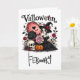 Una pequeña bruja gótica parecida a una muñeca con un vestido negro que barre el suelo, se sienta contra un fondo de un gran corazón rosado. Su sombrero oscuro de bruja está inclinado en un ángulo desenfadado y sujeto con un ramo de rosas rojas; rizos negros sueltos enmarcan una cara pálida con ojos grandes y expresivos y una ligera sonrisa de complicidad. Un recordatorio tranquilo de la mortalidad que se siente más ornamental que amenazante. Una mezcla de afecto y rareza: amor y susto mezclados en un tema. La palabra “Valloween” se arquea encima para que el texto se convierta en parte de la narrativa decorativa de la imagen.