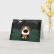 Diseño divertido de Halloween del beagle en tarjetas de felicitación. El beagle en un traje del vampiro está hacia fuera truco o el tratar.