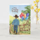 Una valla de madera de granero con globos crea una atractiva escena campestre. ¿Cómo puede tu pequeño vaquero no sentirse bien en casa cuando le das esta tarjeta de cumpleaños con temática occidental para su séptimo cumpleaños?