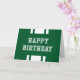 Tarjeta de cumpleaños de estilo variado con las palabras "Feliz cumpleaños" y franjas en blanco contra un color de fondo que es editable (haga clic en personalizar para cambiar) que es perfecto para atletas o entrenadores. Para agregar texto al interior de la tarjeta, haga clic en el botón "Personalizar". *Tenga en cuenta que la marca de agua Zazzle que aparece en la vista previa del zoom NO aparecerá en el producto impreso final. © Rosewood y Citrus