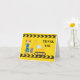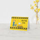 Tarjeta de agradecimiento de excavadora de construcción personalizada genial para un niño que ama los vehículos de construcción amarillos en negro y amarillo. Diseño de vehículo divertido para un niño pequeño que ama los coches y camiones. Personalice con el nombre de su hijo debajo de la cinta de precaución negra y amarilla.