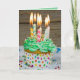 Muchas velas de cumpleaños a rayas en la crema verde de quequitos con rociadores de colores para el cumpleaños