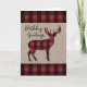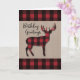 Tarjeta Venado de cumpleaños en rojo negro sobre madera