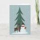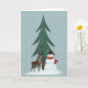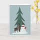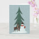 Tarjeta Venado y muñeco de nieve en los copos de nieve