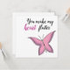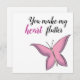 Una elegante tarjeta el día de San Valentín con una delicada mariposa rosa. "Me haces temblar el corazón" ¿Ya sabes a quién quieres regalarle esto?
