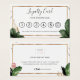 Diseño moderno y elegante imprimió hojas tropicales de verano y tarjeta de punzonado de fidelidad de marco Purpurina de oro que se puede personalizar con tu texto. Haga clic en el botón "Personalizar" y utilice nuestra herramienta de diseño para modificar esta plantilla. Visita la tienda de Diseño de Arte Gráfico para ver otros productos que coincidan con este diseño.