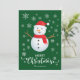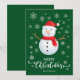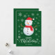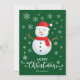 Tarjeta verde de Navidad con hombre de nieve