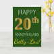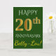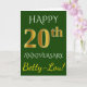 Tarjeta Verde, Dorado Falso Aniversario de Bodas 20 + Nomb