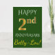 Tarjeta Verde, falso oro 2º aniversario de bodas + nombre