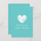 Tarjeta vertical boda azul turquesa. Plantilla de diseño elegante para información adicional como la dirección del sitio web. Ideal para el matrimonio romántico en cualquier época del año. Diseño de luz moderno con corazón de amor desvanecido.