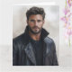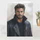 Esta elegante tarjeta de arte cuenta con un retrato de acuarela genial de un joven apuesto que se mecía una camiseta negra y una chaqueta de cuero negro con un cuello invertido. Su barba apretada y su aspecto moderno exudan confianza. La acuarela aporta un toque artístico único. Perfecto para enviar un saludo contemporáneo, una nota elegante o para quien aprecie el retrato masculino moderno.