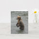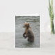Esta postal captura un momento sereno pero poderoso en el Parque Nacional Katmai, Alaska. Un oso marrón madre se alza pacientemente en el agua justo debajo de Brooks Falls, buscando cuidadosamente salmón. Es una imagen clásica de la selva de Alaska, mostrando los diligentes esfuerzos de los osos para alimentarse a sí mismos y a sus jóvenes.