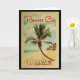 Una estampada de arte de mediados de siglo en la Florida, de estilo poster de viajes vintage. Cuenta con una palmera curvada en una playa de arena con el océano bajo un cielo azul turbio.