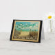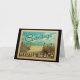 El diseño de esta postal antigua de Greetings From Myrtle Beach presenta una playa de arena con un hermoso agua turquesa del océano y sobre el mar, un cielo azul con nubes blancas onduladas. En estilo de viajes vintage.
