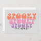 Este diseño muestra la frase "Spooky Spooky Spooky Vibes" dispuesta en un formato en cascada y apilado. La palabra "Spooky" se repite tres veces, cada una en un color diferente, comenzando con un naranja vibrante, pasando a un rosa suave y terminando con un púrpura pastel. Las letras son gruesas y redondeadas, lo que les da una apariencia juguetona y burbujeante que contrasta con el tema espeluznante. La palabra "vibes" está escrita debajo en una delicada fuente cursiva negra, lo que añade un toque elegante al diseño general. Pequeños acentos de estrellas rodean el texto, lo que realza el ambiente caprichoso y festivo. Este diseño es perfecto para una versión divertida y ligera de Halloween.