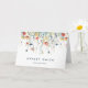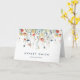 Este diseño está rodeado de flores silvestres vibrantes en tonos rojos, amarillos, verdes, verde azulados y azules. Personalice con su nombre e información comercial.
