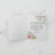Esta tarjeta de bienvenida del Día de la Madre es una hermosa mezcla de elegancia y alegría. La tarjeta está decorada con un diseño floral intrincado, con una variedad de flores que se muestran en colores vivos. Cada flor está muy bien decorada, con diferentes formas y patrones que se desprenden de forma destacada del fondo blanco. En el centro de la tarjeta hay un marco ovalado con bordes suaves. Este cuadro contiene el mensaje más sincero "Feliz Día de la Madre" escrito en un elegante tipo de letra cursiva. La combinación de colores vivos, delicados elementos de diseño y el mensaje cálido hace que esta carta no sea solamente un portador de tus sentimientos sino una pieza de arte que cualquier madre apreciaría.