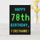 Este sencillo y divertido diseño de tarjetas de felicitación de cumpleaños incluye un mensaje como "¡FELIZ CUMPLEAÑOS 78, NOMBRE DE PELO!". También presenta un aspecto divertido y pixelado que recuerda a la aparición de los videojuegos retro de la era de 8 bits de los años 80 y principios de los 90. El nombre en la parte delantera y el mensaje en la parte interior se pueden personalizar. Se podría enviar o dar a alguien que esté celebrando su cumpleaños setenta y ocho, y que disfrute jugando juegos clásicos de computadora. [~Z0000099]