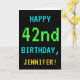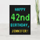 Este sencillo y divertido diseño de tarjetas de felicitación de cumpleaños incluye un mensaje como "¡FELIZ CUMPLEAÑOS, JENNIFER!". También presenta un aspecto divertido y pixelado que recuerda a la aparición de los retro juegos de computadoras de la era de 8 bits de los años 80 y principios de los 90. El nombre en la parte delantera y el mensaje en la parte interior se pueden personalizar. Se podría enviar o dar a alguien que esté celebrando su 42° cumpleaños, y que disfrute jugando juegos de computadora más antiguos. [~Z0000099]