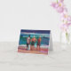 Una tarjeta basada en una pintura colorida de tres más viejos hombres que colocan y que miran las ondas que se estrellan la playa.