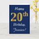 Tarjeta Vigésimo cumpleaños del oro azul, falso + Nombre