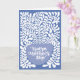 Esta tarjeta de felicitación plegada del Día de la Madre presenta una divertida y artística planta maceta con viñas que se retuercen y giran alrededor de la página. Esta hermosa tarjeta azul monocromática está en blanco en el interior para lograr la máxima versatilidad.