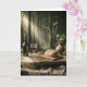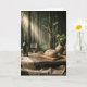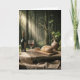 Tarjeta Vino de cumpleaños y pan en mesa del bosque