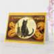Tarjeta Vintage A Merry Halloween Black Cat Broom