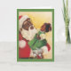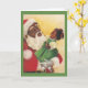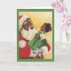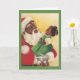 Una adorable imagen vintage de Navidad presenta a un Santa Claus afroamericano que sostiene en su brazo a una niña pequeña y linda que viste un vestido verde y lazos rojos en su cabello para Navidad. Santa está hablando con la niña y ella está abrumada de risa y alegría. El verso dentro de la tarjeta es: "Que la temporada de Navidad Llene tu hogar de alegría, Tu corazón de amor Y tu vida de risa."
