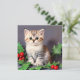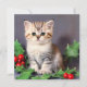 Tarjeta con un gatito vintage de Navidad y un gatito holgado! Un gatito adorable, con ojos verdes, posa con ramos de holly. ¡Un buen regalo para la temporada de Navidades y para los amantes del gato!