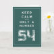 Vintage mantener tranquilo al personalizado de texto 54th Birthday card. Divertido Mantener la calma y continuar con la cita de 54 años. Haga su propia parodia de edad específica con el número de edad del personalizado. Idea de tarjeta de felicitación de Guay para hombres y mujeres. Plantilla de tipografía rústica angustiada. fondo de color personalizado. Personalizar con mensaje dentro.