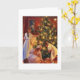 Una imagen vintage de Navidad muestra una escena familiar en un hogar adorable brillando con las luces en un árbol de Navidad. Una madre y tres chicas en sus trajes nocturnos están mirando a través de los regalos debajo del árbol para ver a cuáles pertenecen antes de que empiecen a abrirlos. El mensaje dentro de la tarjeta es: "Que tus vacaciones brillen y brillen".