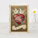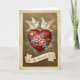 This design shows a large deep red heart with a soft, velvety look, set against a brown-and-gold background that looks aged with faint cracks. Two white doves sit on top of the heart, wings slightly open, facing each other with calm, tender expressions. Pink roses and small blue forget-me-nots cluster along one side of the heart, adding a gentle, romantic garden feel. A gold Cupid’s arrow runs through the heart, with tiny gold spark marks near where it enters, hinting at love that hits all at once. Near the bottom, a cream banner curls across the card and reads “To My Dearest Love” in dark, classic lettering. An ornate raised border frames the whole scene, giving it an old-fashioned look without feeling distant. It feels meaningful to give because the doves, flowers, and message all point to steady love and lasting care 🥰❤️.