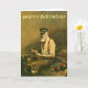 Esta tarjeta de cumpleaños se ilustra con un viejo pescador orgulloso sentado en una langosta enorme. Su última captura.