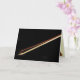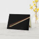 Esta tarjeta de nota presenta una clásica vida de quietud de un elegante y antiguo arco de violín. Cuando el arco se dibuja a través de las cuerdas en el cuerpo del violín, ¡produce una música increíble y mágica! Los magníficos tonos marrones dorados, casi naranjas, están empañados por un fondo negro. En el interior hay un pequeño violín.