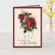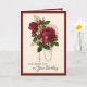 Con una hermosa imagen religiosa católica tradicional de rosas rojas profundas con el sagrado rosario. Adentro está la Santísima Virgen María con el Niño Jesús en los brazos sobre los rosas. Un verso de las Escrituras está por dentro. Todo el texto y las fuentes se pueden modificar para adaptarse a la ocasión y al destinatario.