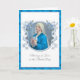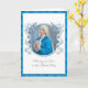 Hermosa imagen religiosa floral antigua de la Santísima Virgen María sosteniendo dos palomas incrustadas en un hermoso marco decorativo antiguo con flores azules. Dentro está la misma imagen con el santo rosario y un verso de cumpleaños en el lado derecho. Todo el texto y las fuentes se pueden modificar.