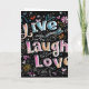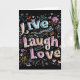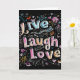 Un diseño inspirador y positivo con las palabras vivir, amar y reír. Genial por estar bien, cumpleaños, gracias y más.
