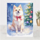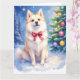 Bring festive cheer to the season with this charming Christmas card featuring a fluffy American Eskimo Dog beside a sparkling holiday tree. Painted in a warm watercolor style, the snow-kissed branches and glowing ornaments create a cozy winter feel perfect for dog lovers. With a blank interior for personal messages, this card is ideal for holiday gifting, seasonal greetings, and sharing joy with fellow pet enthusiasts.