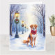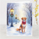Tarjeta Watercolor American Foxhound Snowy Lamppost