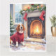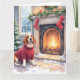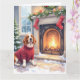 Tarjeta Watercolor Basset Hound Cozy Fireplace Christmas